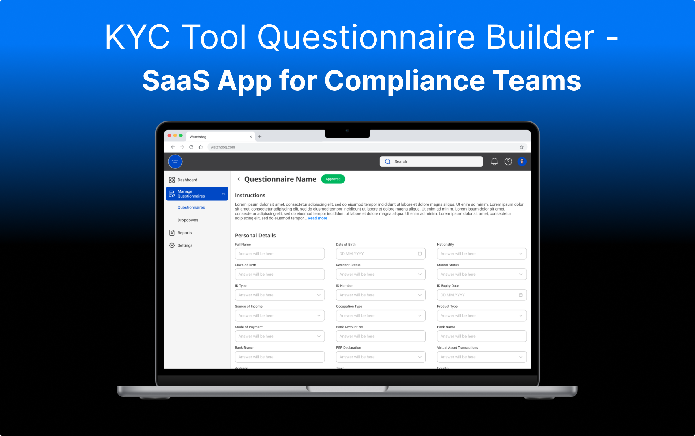 Manage Questionnaires in KYC Tool.